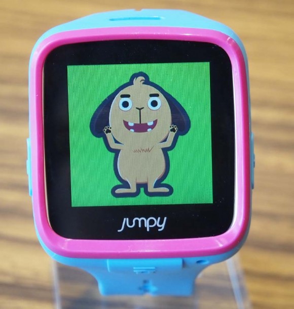 JUMPY內建故事書、英文童謠、簡易單字、計步器,錄音器和藍芽傳訊等功能。手錶裡面造型可愛的大頭寵物狗(JUMPY),也是小朋友的好朋友,小孩藉由幾個特定的聲控指令,就能與JUMPY互動、一同玩樂,甚至還可以幫牠變換造型。