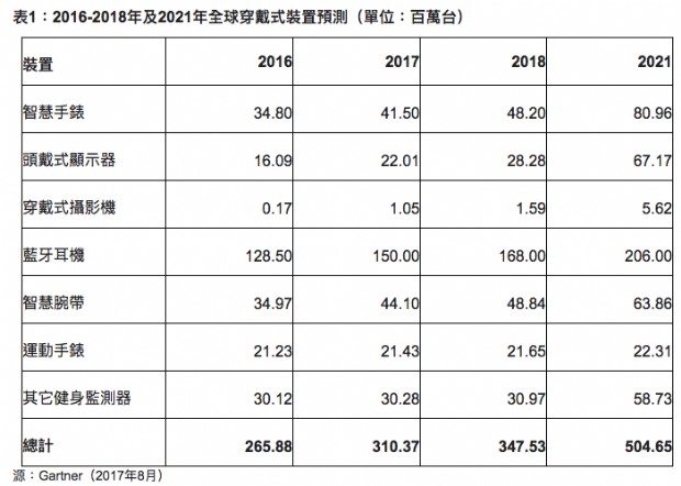 Gartner: 2017年全球將賣出3.1億台穿戴式裝置