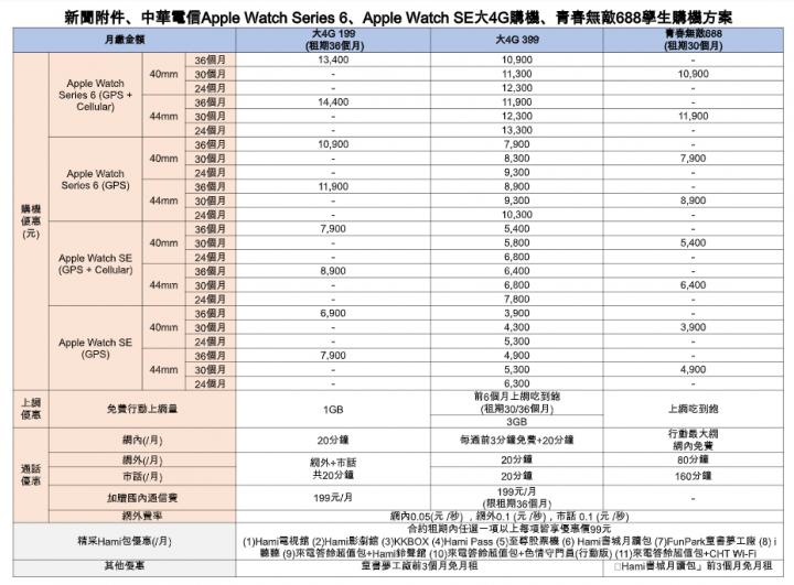 有關更多Apple Watch Series 6、Apple Watch SE購機資費方案內容,詳參附件。