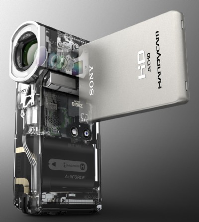 Sony 日前發表一款迷你掌上型 DV: HDR-TG1,厚度僅 3.2cm,重量也僅 300g,但卻可錄製 1920x1080i 的 AVCHD 格式影片,堪稱是全球最輕最小的 Full HD 數位攝影機。這款小型 DV 搭載了與 α700 同等級的 Exmor 低雜訊 1/5吋 CMOS 感光元件,除了優異的動態錄製效能外,同時也可拍攝四百萬畫素靜態照片。