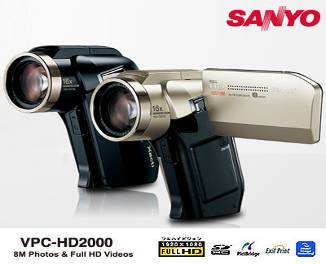 Sanyo Xacti 不斷在世界上創造極致工藝, 追求更便利、隨心所欲紀錄珍藏高畫質影像目標而努力,日前推出HD2000 FULL HD DV(HD1010的進階版),功能更升級完善。以輕巧槍型的機身設計能展現出1920X1080 60 field/s (非60i) Full HD高畫質影像優點,技術提升不再有橫紋困擾,並使用CMOS感光元件,與CCD技術不同,能更加節省電源、增加攝影時間,HD2000輕巧重量僅約268g(不包括電池、SD卡)輕巧方便攜帶,並經人體工學研究設計,所以在任何角度持握下都可拍出穩定的畫面。