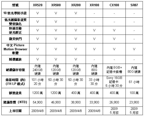 Handycam [HDR-XR520]內建240GB硬碟容量的領先業界規格,提供消費者於HD模式下101小時的超長錄影時間,就算每週末錄影2小時,硬碟容量也可持續用約一年,無須擔心容量不足的問題。[HDR-CX100]則為此次唯一一款Flash Memory機種,機身輕巧時尚,有黑、紅2色可選擇,內建8G的記憶體與外加的記憶卡插槽,有效擴充記憶容量,雙管齊下迎合攝錄影檔案的存取需求,讓使用者輕鬆儲存每一刻精采,動人回憶不漏接。