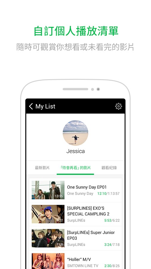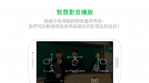 LINE TV 具有乾淨簡潔的界面設計,直覺式的操作讓觀眾「一指」輕鬆調整,並會自動偵測播放裝置以提供最適合的影片畫質,另外,觀眾也能自己設定個人播放清單,將想看或未看完的影片加入「待會再看」的清單中,不怕觀賞途中因誤觸螢幕而被迫中斷。