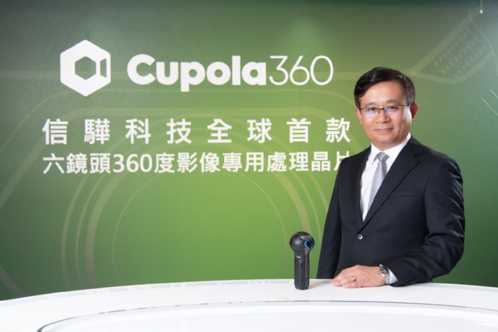 信驊科技所發表全球首款六鏡頭360度影像專用處理晶片Cupola360,擁有多項專為360相機所打造的專屬功能與技術,第一,支援六顆廣角鏡頭與大像素感光器,改善傳統魚眼雙鏡頭影像失真問題;第二,零時差直播及分享功能,能夠在拍攝後立即於相機內進行影像拼接,不需經由手機或電腦等裝置進行拼接後製,可進行即時線上直播及分享;第三,支援4K2K高畫質360全景攝影,不論在細緻及細節較多的360全景或是低光源的夜景,依然能夠清晰呈現;第四,防手震功能,在劇烈晃動、運動或跑跳等場景中,也能夠拍攝出清晰不晃動的影像。此外,信驊科技也同時推出Cupola360 APP行動應用程式,可以管理及瀏覽拍攝完成的檔案,也能將360度影片擷取製作成2D影片或照片,以及擁有人臉辨識及追蹤功能。信驊科技更進一步開發出一款APP,不僅可以輕鬆搜尋各種360度影片同時也能零時差將網路直播360影像推播分享給社群朋友,形成一個360度攝影雲端分享網絡,為360相機的使用者帶來更即時及便利的體驗,也藉此實現信驊科技打造360度相機貼近使用者生活使用的願景。