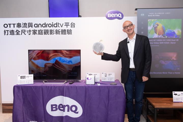 後疫情時代在家時間增加,使用電視習慣亦有所改變。資誠(PwC)所發布的「2019-2023全球娛樂暨媒體業展望報告」指出,台灣OTT市場2023年更可達11億美元。BenQ超前佈署,從32~120吋完整佈局Google認證的AndroidTV平台顯示產品,以ATV平台大型液晶、雷射電視及LED微型投影機,進軍OTT市場,滿足家庭中從小屏到大屏空間不受限的串流沈浸體驗。推出的產品有台灣第一家擁有FilmMaker Mode 電影製作人模式的4K HDR雷射電視V7000i/V7050i,在30公分觀賞距離能投影100吋大畫面 ; 大型液晶E-720系列除了40~65吋齊全尺寸、內建HDR技術、語音搜尋及一鍵連接Netflix 與YouTube,貼進消費者追劇要好畫質、好聲音、好操作的三大需求。另外,兩款同樣搭載ATV平台的全新LED行動投影機GV30/GS50,不只可以看穩定的串流影音、還可以語音搜尋,更是世界首款有2.1聲道的微型投影機。
