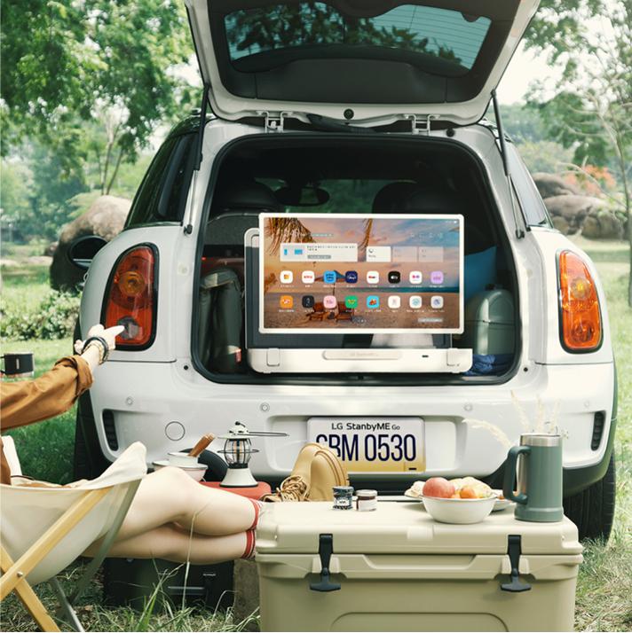 - 有它絕不無聊!LG StanbyME Go 閨蜜機 樂Go版:出遊的視聽娛樂設備怎能少了輕巧的螢幕?LG StanbyME Go 閨蜜機 樂Go版自去年上市以來話題不斷,無線可攜式的27吋LED觸控螢幕,可依觀看需求任意旋轉以及調整角度,還能使用遙控器或透過ThinQR APP串聯手機操作,操控方式多元簡易,且採用軍規級防摔箱,通過多項耐久測試項目,包含衝擊、高低溫、粉塵等,有效抗震防摔,帶到哪裡都安心;搭載杜比全景聲音效規格的4聲道20W喇叭,呈現高品質聲音表現,且配備多款人氣影音串流、遊戲與多變主題APP,視聽娛樂設備的使用情境不再只限於居家使用,外出旅遊也能盡情享受娛樂視界。