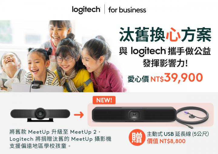 【圖十】現有客戶可享 NT$39,900 升級 MeetUp 2 優惠,並贈送 NT$8,800 主動式 USB 延長線 (5公尺)。Logitech 將捐贈回收的舊 MeetUp 1 至偏遠地區學校,助孩童獲得科技資源。