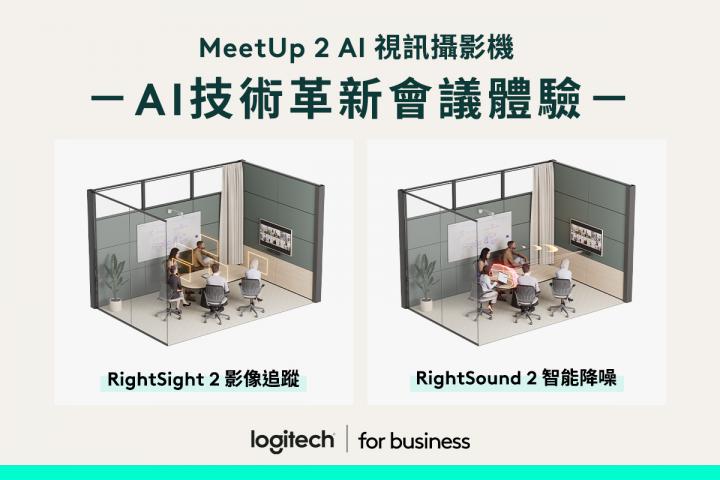 【圖四】 MeetUp 2 結合 AI 影像追蹤 (RightSight 2 )、AI 智能降噪 (RightSound 2) 技術,大幅提升影像與音訊品質,全面革新會議體驗。