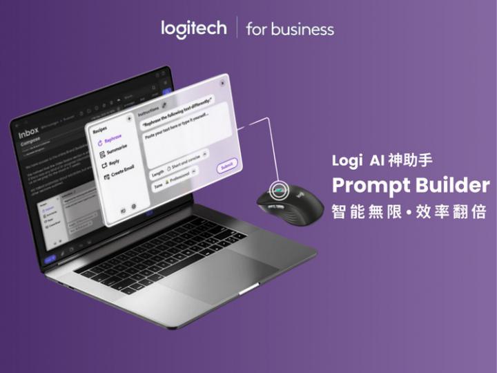 【圖七】Logitech 持續推動 AI 創新,全新「Logi AI Prompt Builder」能快速調整文字風格、摘要內容,或生成不同篇幅的文本,提升工作效率,實現流暢工作流程。