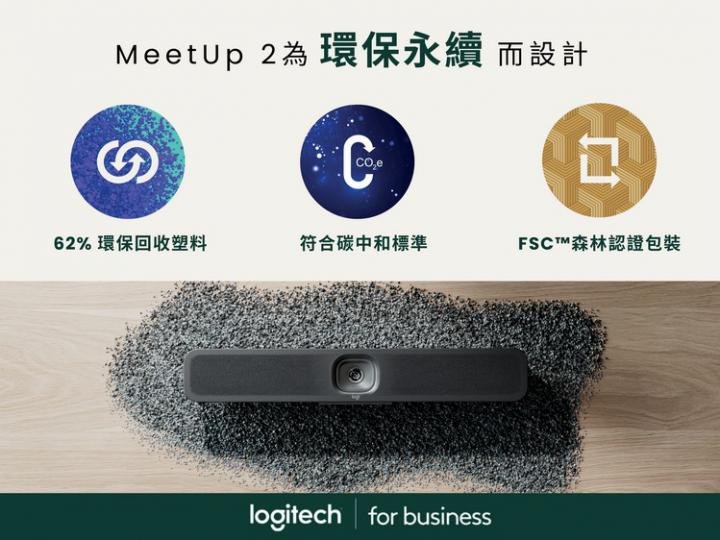 【圖八】MeetUp 2 AI 視訊攝影機,採用了62% 環保回收塑料,並使用FSC?森林認證的包裝,Logitech 致力推動永續發展的未來,為守護環境盡一份心力。