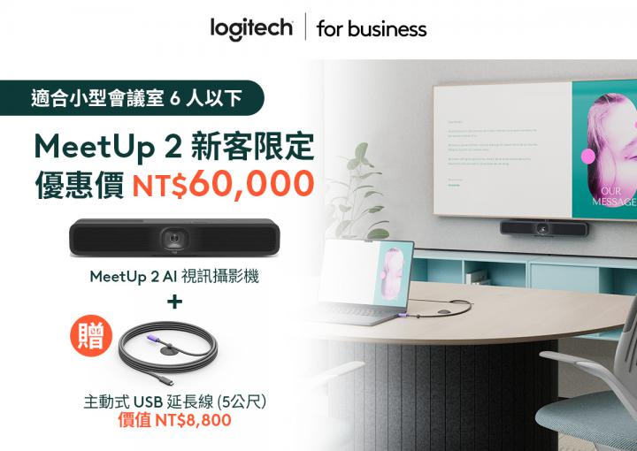 為歡慶 MeetUp 2 AI 視訊攝影機重磅升級新上市,現正推出「新客限定」優惠,凡購買 MeetUp 2 即享 NT$60,000 優惠價,再贈送價值 $8,800 的主動式 USB 延長線 (5公尺),數量有限請把握機會。此外,為回饋 MeetUp 第一代廣大用戶的支持,現有老客戶一樣享有「汰舊換心(新)」優惠方案,僅需 NT$39,900 即可升級至最新的 MeetUp 2,並附贈價值 NT$8,800 主動式 USB 延長線 (5公尺)。同時,Logitech 會將淘汰的舊 MeetUp 1 視訊攝影機捐出,幫助偏遠地區學校孩童,為他們提供更多科技資源,升級與愛心兼具,Logitech 邀您一起攜手發揮社會影響力。