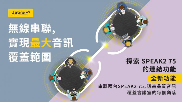 Jabra 宣布旗下旗艦級會議揚聲器 Speak2 75 將透過OTA自動更新,新增設備連結功能,使兩台 Jabra Speak2 75 可相互連接,以提升音訊覆蓋範圍,更新後更適用於中大型會議室使用。設備可與 Microsoft Teams、Zoom 及其他整合通訊認證應用程式(UC-certifiled) 兼容,並支援雙單聲道(Dual Mono)與立體聲(Stereo)模式。