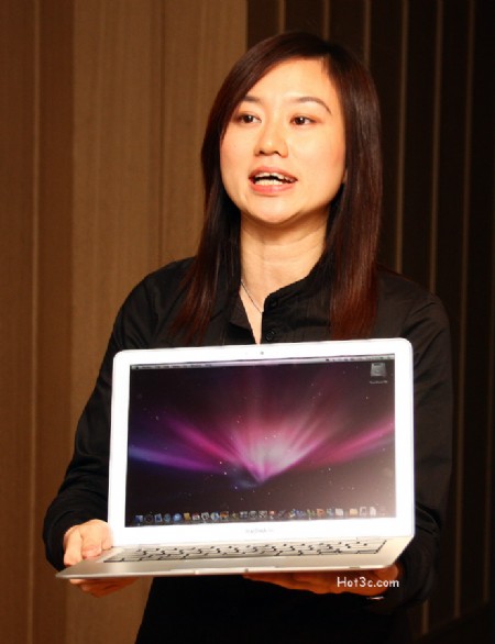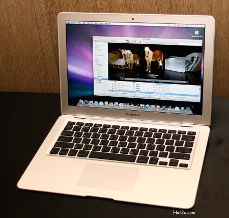 這部最薄處僅有 0.4cm 的 MacBook Air,搭載了超薄超亮麗的13.3吋 LED背光 LCD、全尺寸背光鍵盤,以及與 iPhone 相同的加大的多重觸控式軌跡板。而 MacBook Air 同時也搭載了 Intel Core 2 Duo CPU、2GB 記憶體、80GB 1.8吋硬碟、802.11n Wi-Fi 以及藍牙 2.1,搭載了Mac OS® X Leopard 作業系統,更是配備齊全、功能強大的筆電。