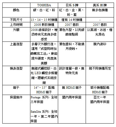 Toshiba 今日一次推出三系列筆電:13"型愛線輕薄機Portege M800、14"型愛線效能機Satellite M300、及15"型愛線多媒體影音機Satellite A300多款筆電。除了 13-15吋產品一應俱全外,也有銀、白、紅、粉四色供消費者選擇。而且,14", 15" 機種還配備 HDMI 輸出端子可直接在數位電視上欣賞高畫質影音效果。Portege系列並提供全球三年保固。各款規格請參考下列網頁:
