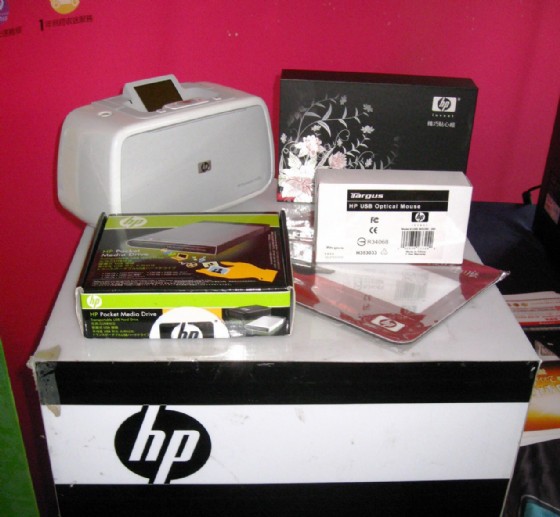現場好康禮:HP獨家黑潮鼠,NB精巧貼心組,2GB功夫熊貓隨身碟,精巧滑鼠墊等。