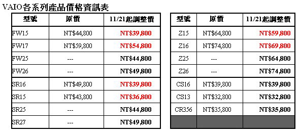 VAIO新品上市, 舊款大降價!