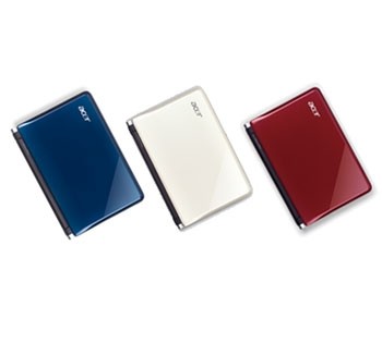 Aspire one小筆電十寸新品通路全面鋪貨,推出純真白、晶艷紅及摩登藍三款時尚小筆電,擁有新一代10.1寸面板切割技術--LED背光鏡面螢幕讓畫面更加細膩又兼具省電環保功能,擁有5200毫安培的6cell電池,最高7小時的使用時間,內建藍芽及無線網路模組,可輕鬆隨時隨地上網,全新10.1寸Aspire one更領先採用Intel最新處理器N280,具667 MHz外頻,傳輸運算速度更快,還搭載Windows XP Home及160G 硬碟,重量僅1.33公斤,即日起上市,售價17,200元。