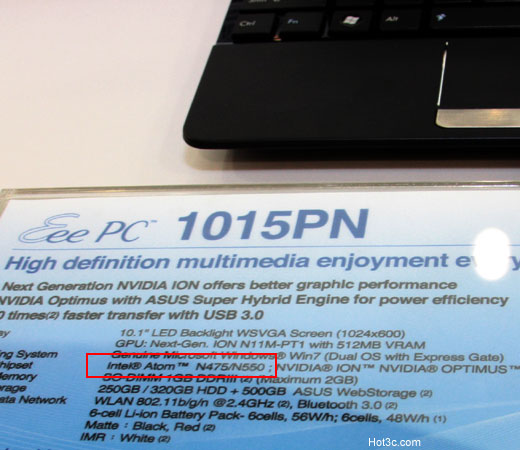 Intel 本週正式發表最新 Atom 家族產品: N550,具備了雙核心、四執行緒架構,並整合了繪圖核心以及內建了難得的 1MB L2 cache、並支援 DDR3 記憶體(最大 2GB)。這款 45nm 製程的處理器時脈速度為 1.5GHz,較先前的 1.66GHz N455、1.83GHz N475 還低了些,不過後兩款都是 512KB L2、單核雙執行緒架構。N550 的 TDP 則有 8.5W,也是目前 N 系列產品最高者,不過 Intel 表示 N550 筆電將與 N450 筆電電池續航力差不多。其實早在今年六月份的 Computex 上,華碩的 EeePC 1015PN 就預告了 N550 的問世。