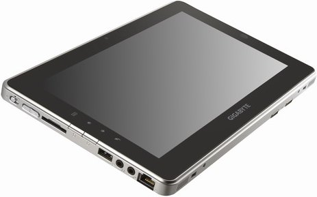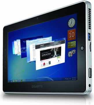 GIGABYTE技嘉筆電秉持創新的研發精神,繼2010年底掀起筆電風潮的獨家三機一體T1125騎士機之外,2011年技嘉更跨足平板電腦市場, 4月將發表一款搭載Windows 7系統的10.1吋輕薄平板S1080,鎖定商務族群,具備行動辦公室的強大處理功能。GIGABYTE S1080是技嘉自行研發的首款平板電腦,為了滿足市場的另一種需求,有別於各式搭載Android系統的行動產品,S1080以商務用途為考量,應用Windows 7系統,內建Microsoft作業軟體和320GB超大容量硬碟,卻能擁有輕薄外型,著實令消費者驚艷。本產品配備USB3.0和藍芽3.0,分別加速高達10倍及8倍的全方位無線傳輸,更可支援3.5G模組,高度提升行動工作效能。S1080不僅是一台市場革命性的行動裝置,除了技嘉專為Wintel設計的軟體介面和硬體貼心設計外,並保有強大的相容性、擴充性,是提供上班族隨時編輯文件、收發電子郵件、資訊傳輸的公事好幫手,更不乏多元娛樂體驗的附加價值。