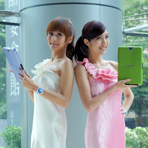 新禾科技總經理陳國瑞指出:『TOSHIBA 第一台平板AT100,多色彩可換殼的10吋彩殼機讓平板與時尚色彩有趣結合。AT100大視彩的玩樂主張有,搭載背景減噪、動態強化音域及雙聲道環繞音效大音樂特色; Resolution+高銳解析畫質螢幕、亮度自動控制設計,重建影像銳利度,提升高畫質影音享受;在擴充界面上也提供標準USB 2.0、HDMI輸出端子與SDHC讀卡槽搭載,豐富人機介面使用超便利!搭載Android 3.0作業系統,獨家多彩條紋可換機殼、可換電池設計,延長續航力輕行動。』