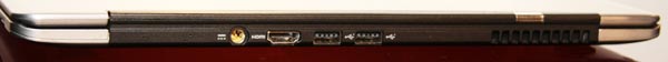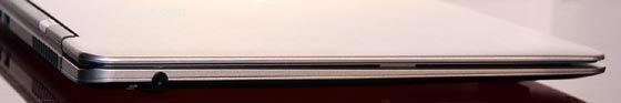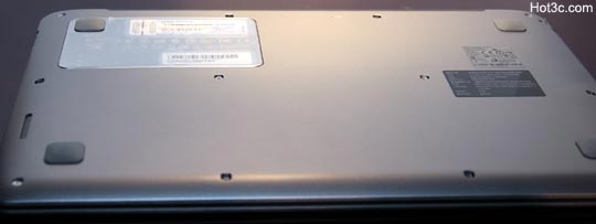 不過,Aspire S3 電池為內建式,無法自行更換。而機底也沒有任何可自行開啟的護蓋,因此想要自行替換硬碟、DRAM 也將都得費一番功夫!在周邊方面,則只有提供兩個 USB 2.0 port,並沒有高速的 USB 3.0,甚至有沒有 Ethernet 網路插孔。但仍有 HDMI、讀卡機插槽。