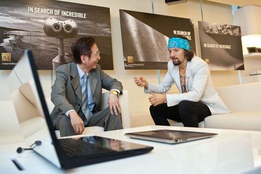 Jason Mraz以I’m Yours一曲走紅世界,清新形象與輕快曲風擄獲人心。做為華碩「In Search of Incredible」的夥伴,Jason Mraz親自走訪美國、英國、摩洛哥等地,發掘、聆聽世界,除了找尋,更期望留下那些屬於無與倫比的精彩片刻。而再一次,華碩邀請Jason Mraz走訪華碩,直接暢談互動,分享活動中的點滴故事,更將「In Search of Incredible」精神進一步推廣。董事長施崇棠更親手將超輕薄的智慧筆電ZENBOOK以及「In Search of Incredible」T-shirt贈予Jason Mraz,期望ZENBOOK的獨家聲籟技術傳遞的優異音效表現,能在後續旅程中陪伴Jason Mraz無與倫比的精彩旅程。