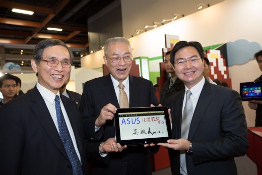 2012資訊月熱鬧開鑼,華碩主題館迎來貴賓副總統吳敦義與經濟部長施顏祥,由華碩聯合科技總經理林福能展示最新展場首賣的ASUS TAICHI雙螢幕筆電極致魅力。絕美高規格設計,融合平板與筆電使用情境,讓吳副總統也驚艷,並親自動手體驗。