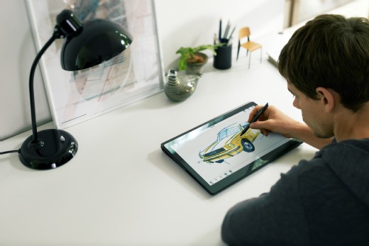 分離式螢幕與全距鍵盤採磁吸式設計,不須使用時,就成為螢幕保護蓋。內建觸控板可透過無線連接使用,提供筆記型電腦般的商務處理能力。