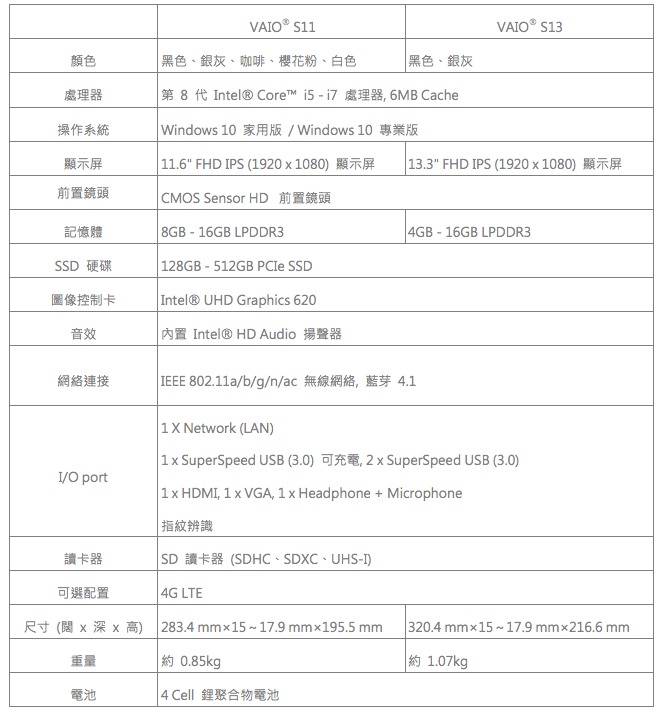 VAIOR S系列 - VAIOR S11及VAIOR S13