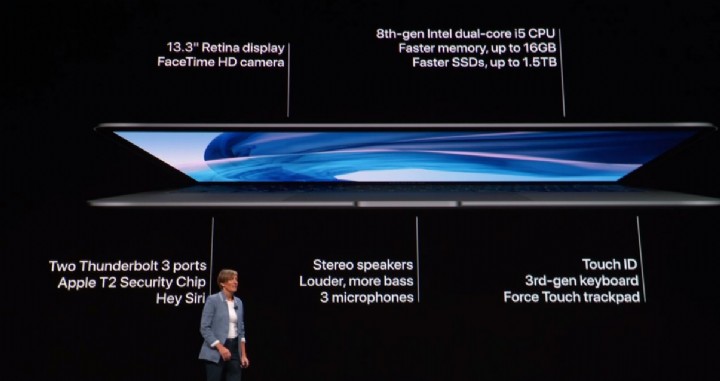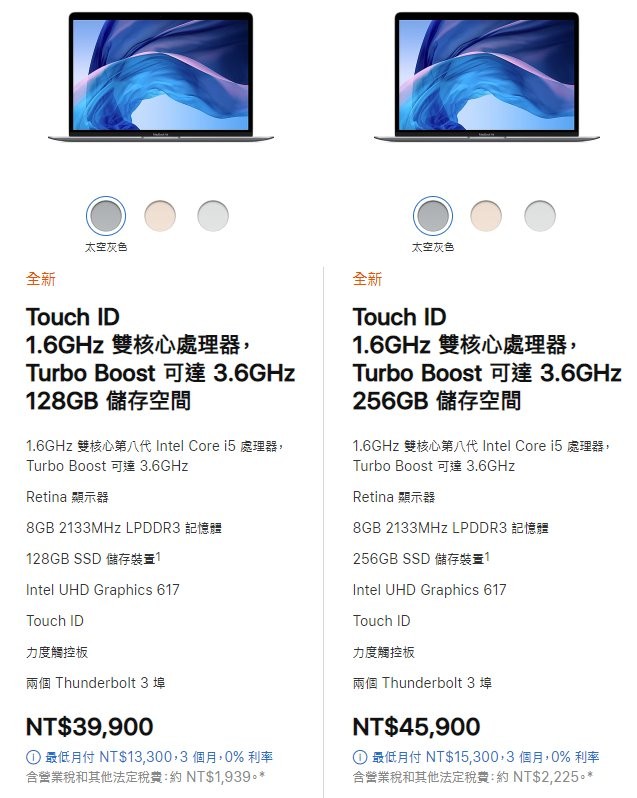 Apple 今日發表了新款 MacBook Air,終於搭載了 Retina 螢幕,提供了 2560x1600 16:10 畫素 13.3吋畫面,而第八代 Intel 處理器,最高可搭載 16GB 記憶體以及 1.5TB SSD。此外,還內建了 Touch ID 指紋辨識功能,內建的 T2 安全晶片讓筆電的防護能力更高。新款 MBA 預計下周就會上市,建議售價 US$1199 起(Core i5 CPU, 8GB RAM, 128GB SSD),即日起就可預購。台灣售價: