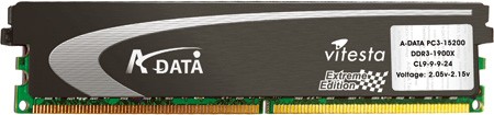 DDR3高時脈的參數經常都介於CL9~CL10之間,此次首度在研討會現身的A-DATA X 系列DDR3 1900X,以參數CL 9-9-9-24的傑出表現,首先打破目前DDR3產品最高市售規格1333~1866之市場僵局;CPU超頻往往受限於記憶體時脈,搭配高時脈A-DATA DDR3 1900X是釋放CPU效能極限最佳超頻利器,更有效改善運算功率發揮電腦系統極限潛能。X系列為A-DATA最新發表之高階產品系列,在EVEREST Memory 頻寬讀寫測試中得到11000 MB/S以上的效能,提供高階玩家需求所打造的高時脈極限超頻記憶體;散熱片則不同以往,採用了具有神秘感的鈦色金屬質感。針對頂極玩家所設計的同系列中也包括了A-DATA DDR3 1600X;同樣的在EVEREST Memory 頻寬測試中也已接近破萬MB/S的高效能下,提供玩家高穩定度、高性價比(C/P值)的超值記憶體.