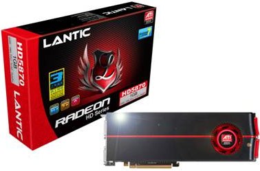 Lantic顯示卡產品研發團隊與ATI同步推出符合公版設計與用料的A5870D5-1G2DPH及A5850D5-1G2DPH,採用ATI最新的40nm Cypress核心、黑色PCB板底、負壓抽風式散熱器以及256-bit 1GB GDDR5高速記憶體。支援ATI獨家CrossFireX,可透由橋接器串連,達到性能倍數的再提升。而為了體貼使用者對顯示器有多樣的選擇空間,輸出接口採用雙DVI、HDMI與最新Display Port。