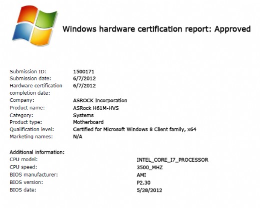 在眾多參與 Windows 8 認證提交的廠商中,華擎是第一家通過考驗的主機板廠商,亦是真正的贏家!「身為主機板產業領導廠商的華擎,一向以為使用者提供最新科技產品為職志。」華擎科技業務暨行銷企劃部副總裁James Lee 表示:「選擇華擎主機板,PC初學者亦能輕鬆地享有硬體的各方面優勢,用戶皆能依本身之需求在華擎產品裡找到最適用的主機板。」