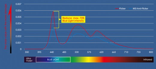螢幕不閃爍技術(Flicker-Free)則可使電流穩定,並再無論何種設定下,皆能防止螢幕呈現一般肉眼所無法看見的閃爍現象,更能在長時間注視螢幕的情況下,有效減少眼睛疲勞,並同時提昇工作效率及生活品質。