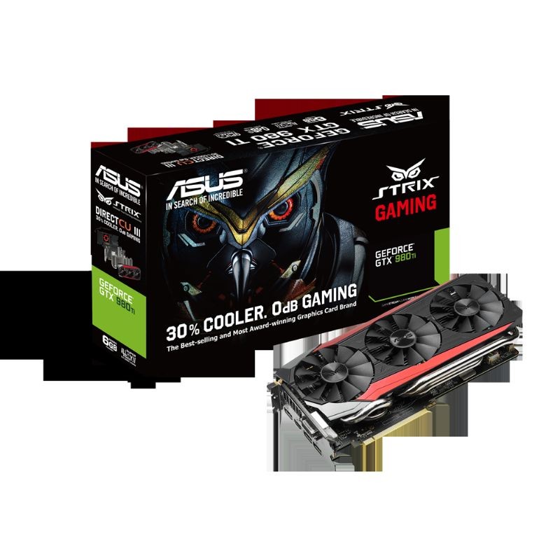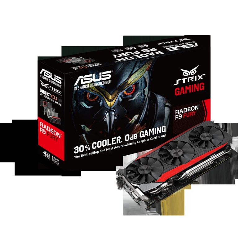 華碩推出Strix GTX 980 Ti與 Strix R9 Fury梟鷹系列電競顯示卡,分別搭載NVIDIA GeForce GTX 980 Ti及Radeon R9 Fury圖形處理器(GPU),其中Strix GTX 980 Ti加速時脈速度在遊戲模式下可達1291MHz,在超頻模式下則可大幅提升時脈速度上看1317 MHz,此等效能讓Strix GTX 980 Ti在執行《巫師 3 :狂獵》時,較公版顯卡速度加快24%遊戲效能;Strix GTX 980 Ti / R9 Fury 內建DirectCU III冰霜酷銅散熱技術,以及華碩專利扇葉設計的新型三風扇,不僅提升冷卻效能達30%,還可提供3倍降噪效果,啟動勁冷無聲絕世超頻。