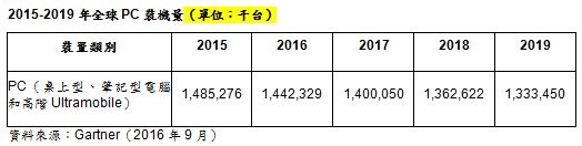 Gartner研究副總裁蔡惠芬(Tracy Tsai):「我們認知中的的傳統PC商業模式已經瓦解。過去五年中前五大行動PC廠商的市占率成長了11%,從2011年的65%成長至2016上半年的76%,但這是犧牲高報酬營收所換來的成果。雖然這並非意味PC市場的末日已經來臨,但未來五年內PC裝機量仍將持續萎縮,同時PC廠商的營收和利潤也將持續受到侵蝕。」