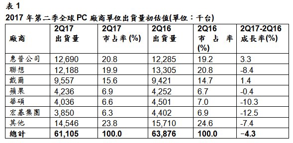 Gartner: 2017Q2 PC 出貨量連續11季下滑