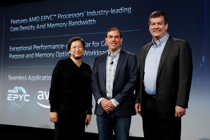 AMD 在Next Horizon大會上與亞馬遜雲端運算服務(Amazon Web Services;AWS)宣佈在Amazon Elastic Compute Cloud(EC2)上推出首款基於AMD EPYC處理器的實例(Instance)。AWS Instance系列中廣受歡迎的方案搭載新款AMD EPYC處理器,擁有領先業界的核心密度與記憶體頻寬,為通用型與記憶體優化工作負載提供優異的每元效能。AMD EPYC處理器優異的核心密度為M5與T3 Instance客戶節省成本,針對網路與應用程式伺服器、企業應用程式後端伺服器、開發與測試環境,透過無縫移植的應用程式為客戶提供低價格的運算、記憶體與網路資源。對於R5 Instance的客戶,AMD EPYC處理器在記憶體頻寬方面的優勢,極適合執行內存運算、資料探勘以及動態資料處理等作業。