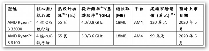 AMD Ryzen 3 3100與AMD Ryzen 3 3300X