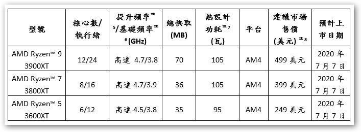 承襲AMD第3代Ryzen處理器系列建立的優勢,AMD Ryzen 3000XT系列處理器透過優化的7奈米製程技術進一步強化世界水平的「Zen 2」架構,在其Ryzen 3000對應產品相同的TDP功耗達到更高的提升頻率註2以及更佳效能。
