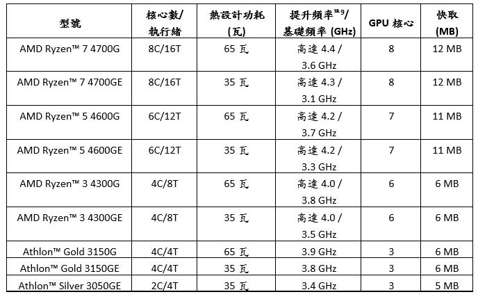 內建AMD Radeon顯示核心的AMD Ryzen 4000 G系列桌上型處理器