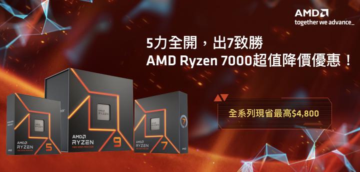 AMD祭出超值降價優惠,AMD Ryzen 7000全系列桌上型處理器包括AMD Ryzen 9 7950X、Ryzen 9 7900X、Ryzen 7 7700X及Ryzen 5 7600X桌上型處理器全面調降售價,其中AMD Ryzen 9 7950X桌上型處理器降幅達21%,現省4,800元,讓玩家搶先入手最新高規格平台,享受極致效能與遊戲表現!