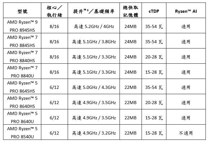 AMD Ryzen PRO 8040系列行動處理器為高效能專業級筆電與行動工作站挹注效能