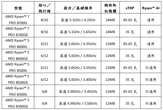 AMD Ryzen PRO 8000系列商用桌上型處理器為全球首款桌上型AI處理器註10