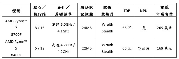 AMD Ryzen 8000 F系列處理器即日起透過各大電子、實體零售商與系統整合商合作夥伴販售。