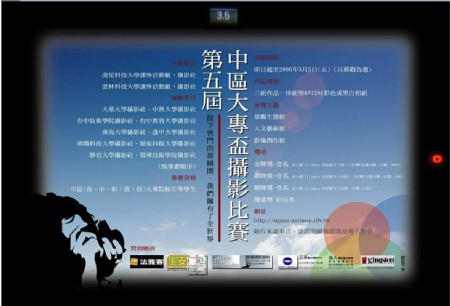 (2006年3月14日 新竹訊) 世界第一大記憶體模組獨立製造廠商—金士頓科技公司,今日宣佈贊助於2006年3月13日至5月5日期間所舉行之第五屆中區大專盃攝影大賽。參與此次活動之學校包括大葉大學、中興大學、台中技術學院、台中教育大學、東海大學、虎尾大學、逢甲大學、朝陽科技大學、雲林科技大學、嶺東科技大學、靜宜大學、環球技術學院等12所大專院校,期望鼓勵台灣中部地區學子感受攝影的樂趣,以攝影記錄生活,也以攝影擁有全世界。