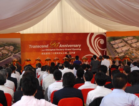歡慶成立20週年創見上海廠區開幕