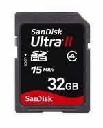 此款 32GB SDHC,存取速度等級為 class 4,屬於 Sandisk Ultra II 產品線系列。雖然是 class 4 中階等級,但 Sandisk 宣稱此款記憶卡可達 15MB/sec 的讀取/寫入速度,比先前 Ultra II 產品線的 10MB/sec讀取, 9MB/sec寫入的速度還高上一大截。