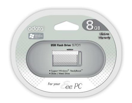 目前已擁有一台最輕巧的Eee PC的您,是否正為找尋它的配件而傷腦筋呢? 威剛科技就是要給您最”夯”的選擇,推出限定版S701隨身碟與SDHC class 6超高速記憶卡,打造專屬時尚配件,迅速擴充您Eee PC容量,輕鬆享受遊樂科技!