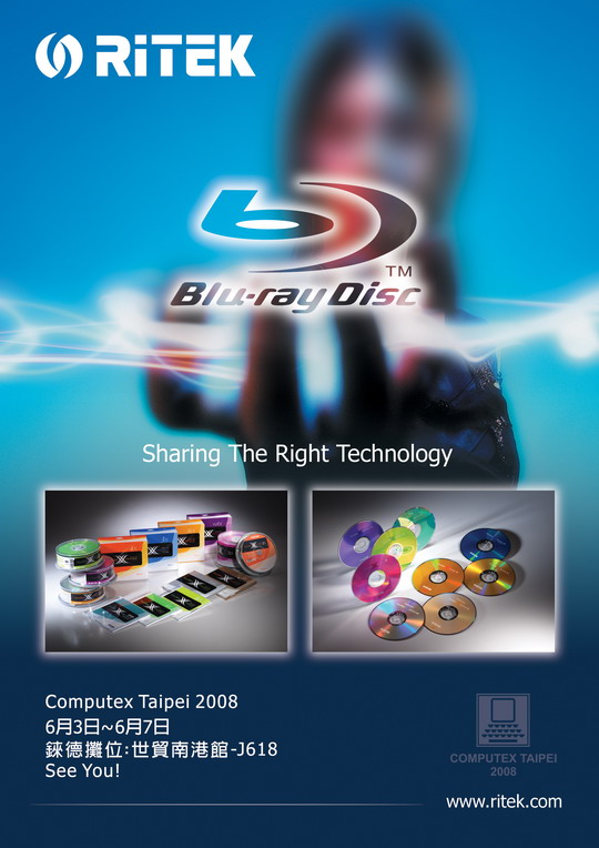 錸德科技期待與您一同參與此次盛會,關於錸德最新消息和系列產品的介紹,請參考錸德全球資訊網 www.ritek.com